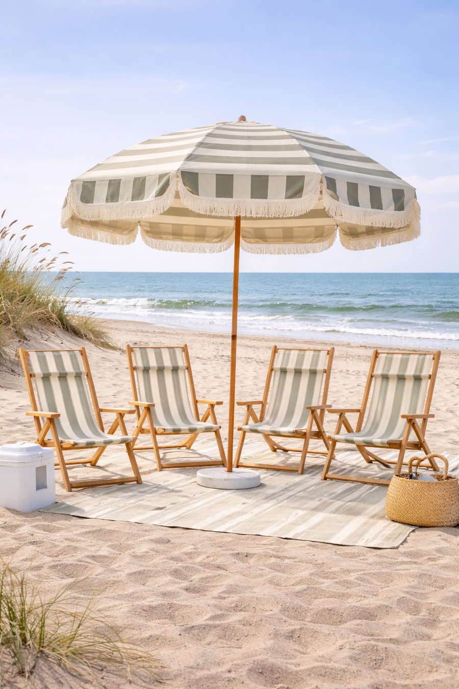 Your beach day, already handled. Umbrella and chairs waiting for you at Isle of Palms — just arrive and enjoy the ocean breeze. Everything set up and ready so your group can walk straight from the car into a perfect beach day. Setup for one umbrella and four chairs.